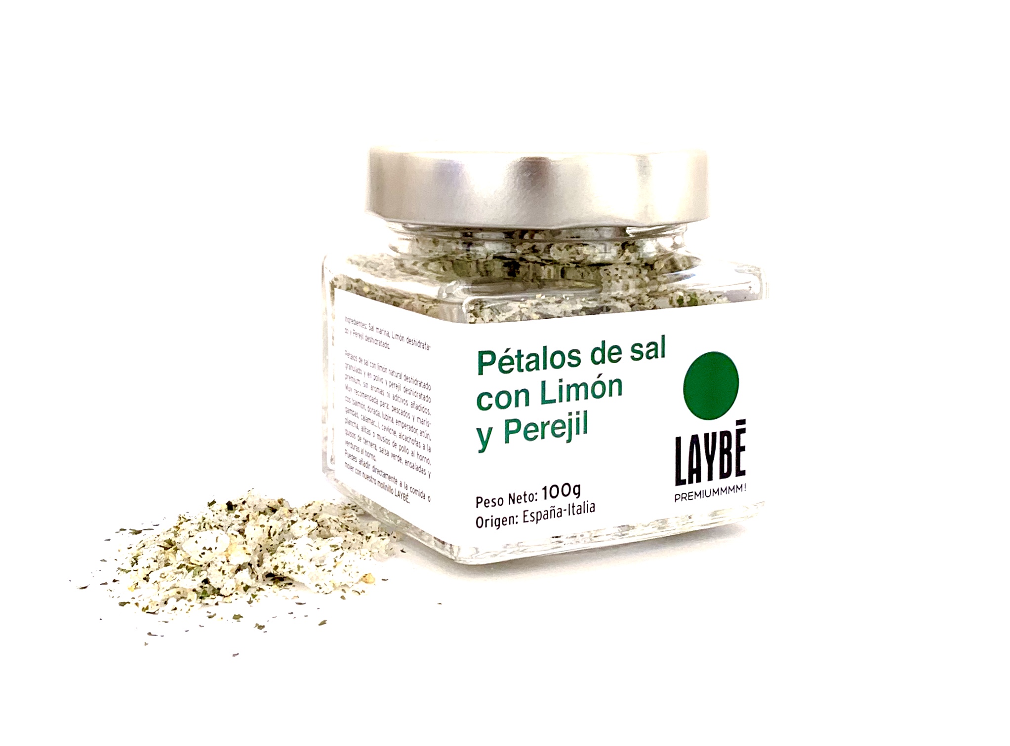 Ingredientes: sal de manantial (84%), perejil deshidratado (9%) y limón deshidratado (7%).